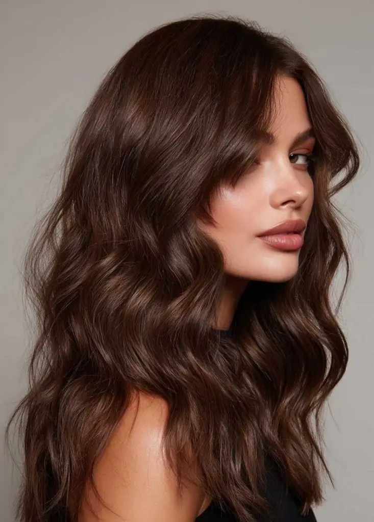 Le ‘molten brunette’ s’impose comme l’une des colorations capillaires les plus en demande de 2025. Cette nuance riche et lumineuse superpose des tons chocolat, ambrés et moka pour créer un brun profond, brillant et résolument sophistiqué. À la fois évocatrice du très en vogue « expensive brunette » et incroyablement naturelle, cette couleur offre un équilibre parfait entre élégance et simplicité. D’abord aperçu sur les célébrités et les passerelles mode, le molten brunette est rapidement devenu un incontournable pour celles qui souhaitent une couleur plus chaude avec de la profondeur et un éclat lumineux qui capte instantanément la lumière.